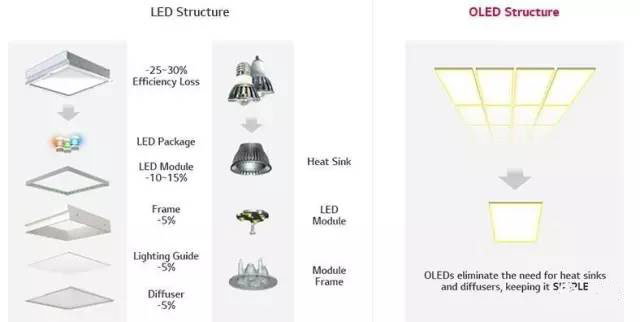 OLED照明是一種新型的固態(tài)照明技術(shù),也是繼LED之后的第四代照明革命技術(shù)。盡管目前LED在發(fā)光壽命以及制造成本上優(yōu)于OLED,但是它們的性能以及成本差距在逐漸縮小,其中最關(guān)鍵的決定性因素在于OLED可以直接作為燈具使用,也就是說,它可以摒棄所有燈罩設(shè)計、散熱裝置部分等等,可以簡化整個照明行業(yè)價值鏈。