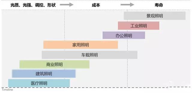 由于技術(shù)的不斷革新,以及人們?nèi)找嬖鲩L的多樣化需求,照明也從一個緩慢發(fā)展的行業(yè)跨越到了一個更加精細化的市場領(lǐng)域,包括家用照明、商業(yè)照明、工業(yè)照明、建筑景觀照明、醫(yī)用和車載照明等多個細分領(lǐng)域。